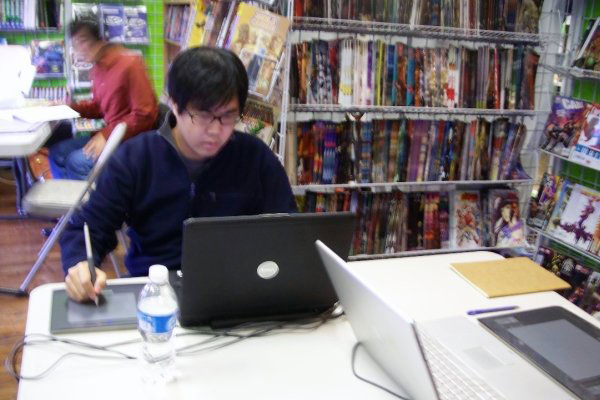 Andy Wong working on his 24-hour comic. I wasn't the only digital artist, just the least productive one.
